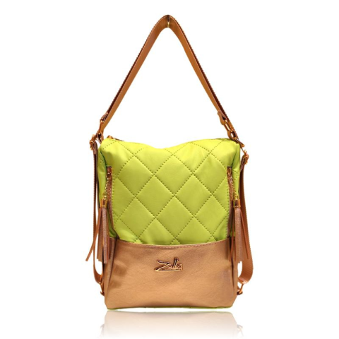 1 kép Zellia Női Válltáska/Hátizsáká Alakítható 22199 Lemon zöld- Arany- Matt- Steppelt-
