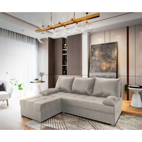 1 kép ZENA krémszínű kinyitható sarokkanapé, kétoldalas bútor termékleírás