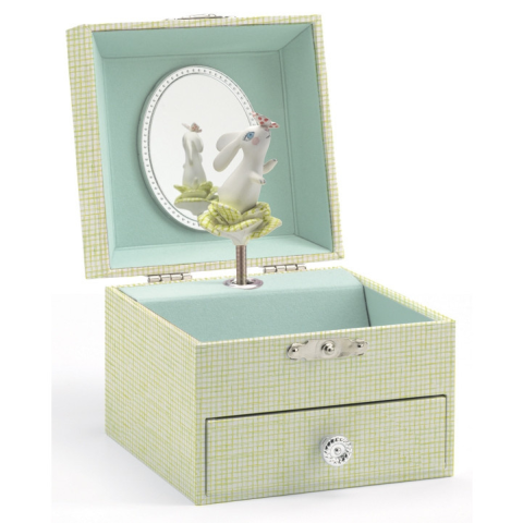 Nyuszis ékszerdoboz zenéjére élmény lesz a készülődés az óvodába. Zenélő ékszerdoboz cuki nyuszi énekével.Miközben a nyuszi körbe táncol a zenére, kiválaszthatod, hogy melyik ékszereidet szeretnéd aznap felvenni. Az ékszerdoboz fából készült, belseje