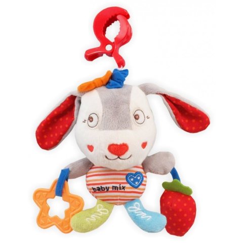 Ez az aranyos nyuszi zenél, így garantált a szórakozás. Segít a kicsinek megismerni és megkülönböztetni a színeket és formákat, továbbá fejleszti a szem- és kézkoordinációját. Babakocsira, autóshordozóra, kiságyra rögzíthető, így akár minden pillanat