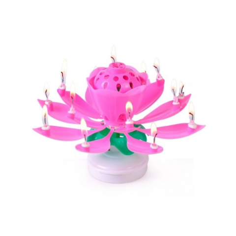 Anyaga: műanyag A virág 8 db rózsaszínű gyertyát tartalmaz. A virág közepének meggyújtását követően elkezdi játszani a Happy Birthday-t, majd a tüzijáték begyújtja a 8 db gyertyát és a virág szép lassan mindeközben kinyílik.
