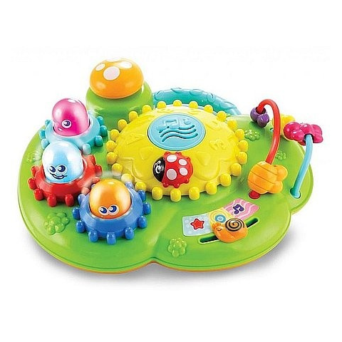 Zenélő - világító játszókert bébijáték Mennyi mindent találhatsz a kertben? A Zenélő - világító játszókert bébijáték egy lapos kert, ami rengeteg meglepetéssel szolgál a picinek A virágok forognak és közben kattognak, ráadásul fényt is adnak ki magukb