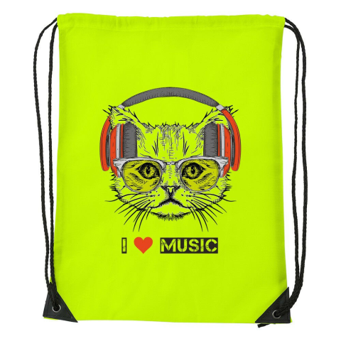 Zenét hallgató cica - Sport táska sárga tornazsák 1 kép