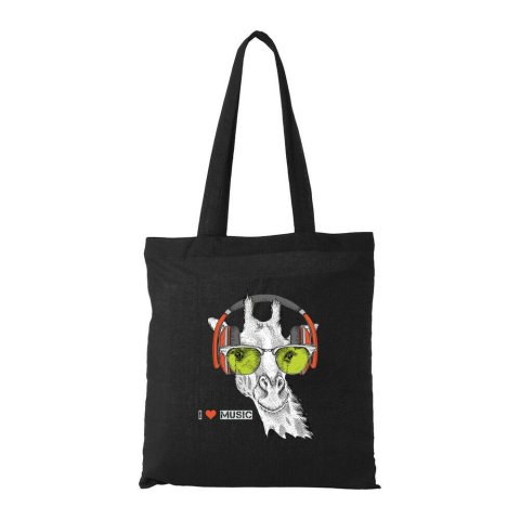 Zenét hallgató zsiráf - Bevásárló táska fekete ajándéktárgy 1 kép