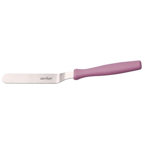 A Zenker díszítő spatula hajlított Patisserie markolattal rendelkezik, 22 cm hosszú és műanyagból készült, a funkcionális rész anyaga pedig rozsdamentes acél.