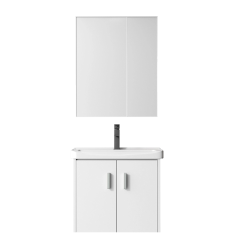 ZETA 60 függesztett fürdőszobai bútorszett kétajtós tükrösszekrénnyel, ráépíthető kerámiamosdóval, koextrudált (többrétegű) fehér PVC lemezből, amely 100%-ban vízálló, fokozottan kopás- és UV-álló.