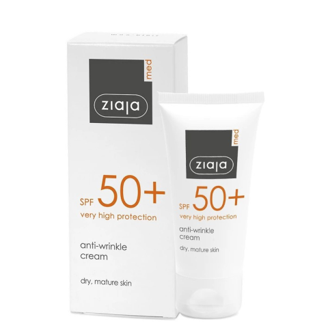 ZIAJA MED napvédő ránctalanító krém, száraz érett bőrre FF50+ Hidratálás, ránctalanítás és fényvédelem egy krémben.