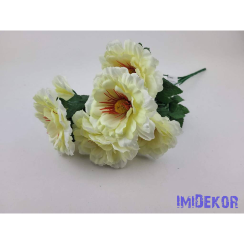 Zinnia 7 ágú selyem csokor 40 cm - Krém dekorációs kellék 1 kép