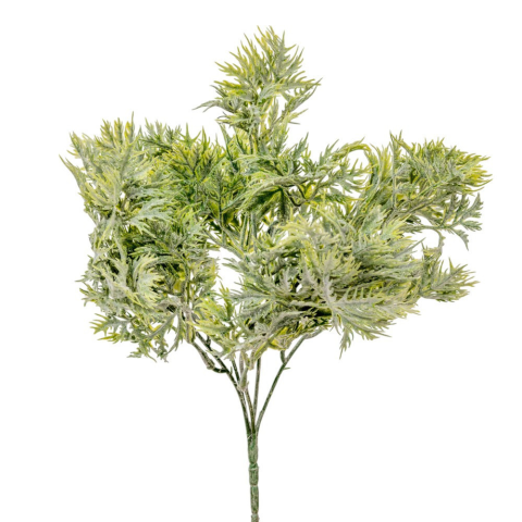 Ez a finom leveles zöld bokor légies, mégis telt hatást ad a dekorjaidnak. Az 5 ágú, 31 cm magas műnövény jól mutat kaspóban, vázában, tálcás dekorban. Puha, fenyőszerű levelei természetes, kissé üde zöld árnyalatúak. Ideális töltőzöld modern, natúr és ru