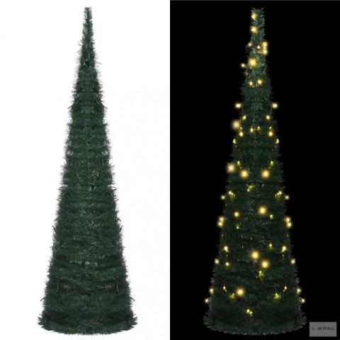 Zöld elővilágított pop-up mű zsinórkarácsonyfa 150 cm műfenyő árgrafikon