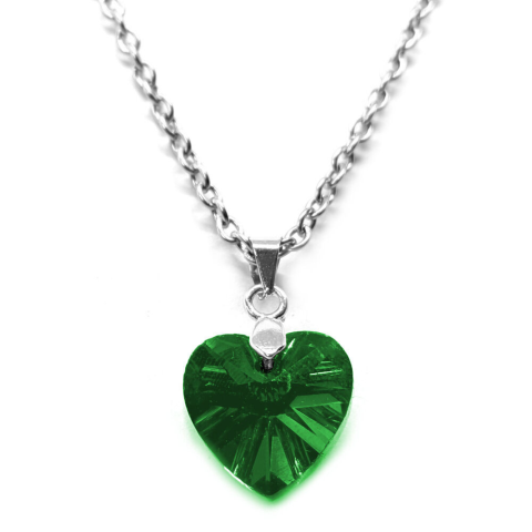 Zöld kristály szív medál ezüst színű lánccal nyaklánc 1 kép