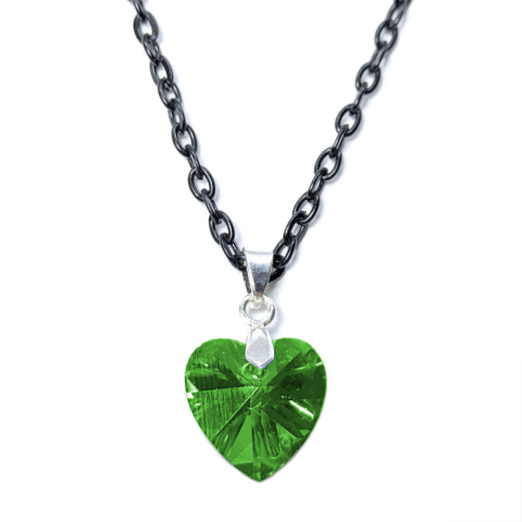 1 kép Zöld kristály szív medál fekete színű lánccal