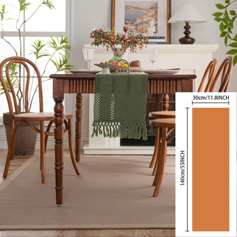 Fedezd fel a stílus és elegancia tökéletes kombinációját ezzel a zöld, szőtt, lyukacsos, egyszínű kézzel készített függő asztali futóval! Ez a különleges darab nemcsak a mindennapi étkezéseket varázsolja ünnepivé, hanem a különleges alkalmakra is tökélete