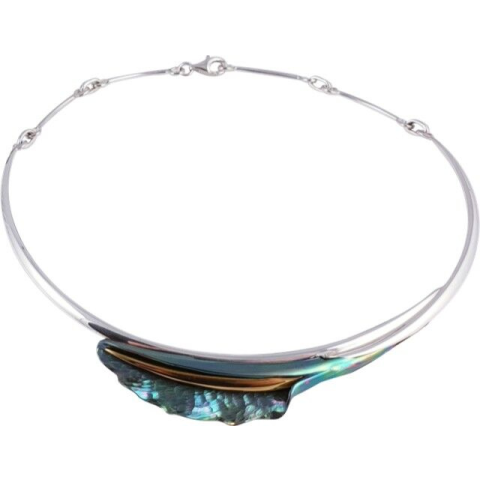 Kézzel készült ezüst nyakék titán virággal – Elegancia és karakter 🌸 Ez a különleges nyakék a klasszikus eleganciát ötvözi a modern formatervezéssel. A 925-ös finomságú ezüstből készült merev nyakéket egyedi, kézzel formázott titán virágszirmok díszí...
