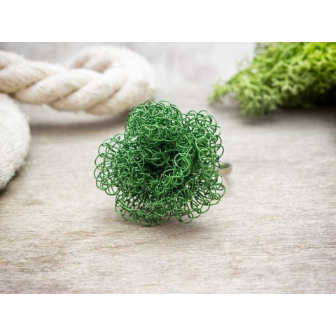 Zöld virág horgolt drót gyűrű gyűrű 1 kép