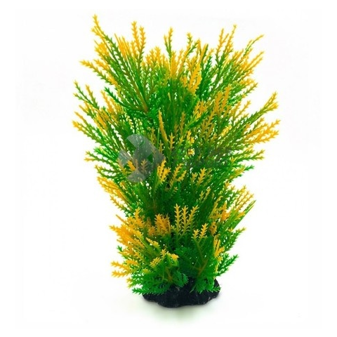 Zöldből sárgába átmenő tüskés levelű akváriumi műnövény. Mutatós, természetes hatású dísz. A dekorációs szerepe mellett a díszhalaknak is rejtekhelyet nyújt, ami nagyban növeli a komfortérzetüket. Élő növényekkel együtt is behelyezhető, remekül kiegészíti a látványvilágot. Talpa nehezékként szolgál, stabilan az akvárium alján tartja a műnövényt.