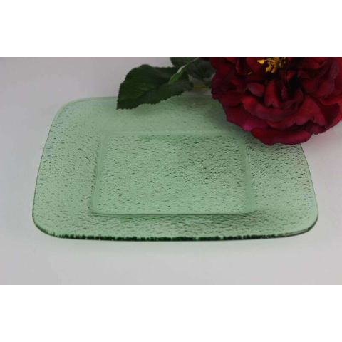 Zöldes négyzet tányér lekerekített szegéllyel 21cm