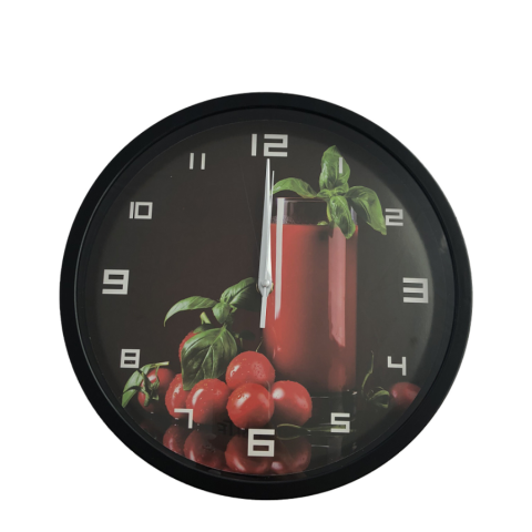 Falióra jól olvasható számlappal. Egyszerű hagyományos kialakítású praktikus óra, melyet bárhova fel lehet akasztani. Az óra számlapja gyönyörű piros paradicsomokkal és a belőlük készült paradicsomlével van díszítve.