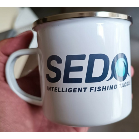 Zománcozott Bögre Fehér 300ml-es, fekete SEDO Fishing logóval.