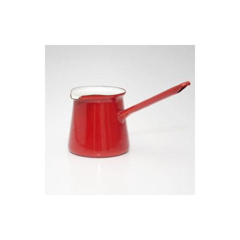 Kávékiöntõ piros 0,25 liter zománcozott 67/5 - Hagyományos zománcozott, nyéllel ellátott kávékiöntõ - Folyadékok, kávé, tea melegítésére alkalmas - Használható gáz, elektromos, üvegkerámia, indukciós tûzhelyen, és fa tüzelésû kályhán - A terméket kétszer zománcozzák így kiváló a minõsége - A kiöntõ fogója hegesztéssel van rögzítve - Anyaga: préselt vas lemez - Ûrtartalma: 0,25 liter (színültig töltve) - Szín: piros