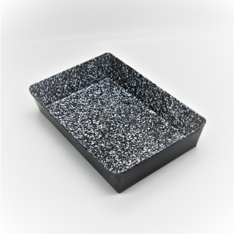 A szögletes tepsi kívül-belül zománc bevonatos, minden tűzhelyben használható