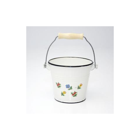Zománcozott vödör fehér virágos 10 liter sütés és főzés 1 kép