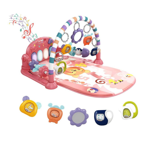 Zongorás játszószőnyeg, rózsaszínkiegészítő játékokkal, függőkkelstabil talpakkalzene és hanghatásokkalA zenélő játszószőnyeg már a legkisebbek figyelmét is felkelti. Élénk színeivel és különleges hanghatásaival lekötheti gyermeked már egészen újszülött korától. A játékhídon található színes, zörgő játékok késszégfejlesztő hatással lehetnek a kicsikre. Talpacskáikkal megérinthetik a zenélő gombokat, így kedves dallamokat is hallgathatnak k