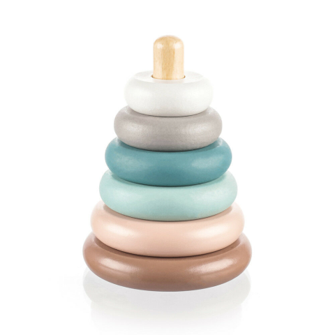 Zopa fa játék gyûrûtorony kék Összerakható, szétszedhetõ, válogatás és tucatnyi különbözõ kombináció – ezek a fából készült rápattintható gyûrûk a kíváncsi felfedezõk számára. A készlet 6 db különbözõ méretû darabból áll, melyek tetszés szerint egymásr