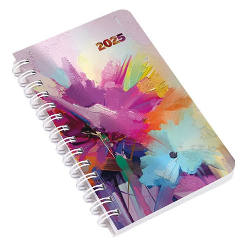 1 kép Zsebnaptár REALSYSTEM SP3 spirál mini 78x128mm heti fehér lapos akvarell 2025.