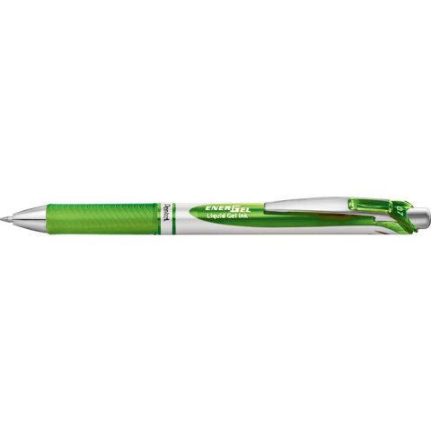 Zseléstoll, 035 mm, nyomógombos, PENTEL EnerGel BL77, világoszöld Nyomógombos zseléstoll -exkluzív, fém hatású tolltest -fém klip -rovátkolt fogózóna a kényelmes, csúszásmentes használatért -golyóátmérő: 0,7 mm -írásvastagság: 0,35 mm -kémlelőnyílás