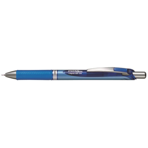 Zseléstoll, 0,25 mm, nyomógombos, PENTEL EnerGel BLN75, kék Nyomógombos, tűhegyű zseléstoll. -golyóátmérő: 0,5 mm -írásvastagság: 0,25 mm -ultragyorsan száradó tinta -könnyen sikló EnerGel tinta -rovátkolt fogózóna -kényelmes, csúszásmentes használat