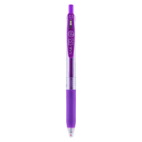 Zseléstoll, 0,33 mm, nyomógombos, ZEBRA Sarasa Clip, lila Nyomógombos zseléstoll, melynek áttetsző teste lehetővé teszi a tinta fogyásának nyomon követését. -gumírozott markolat, melynek színe megegyezik a tinta színével -írásvastagság: 0,33 mm -gyors
