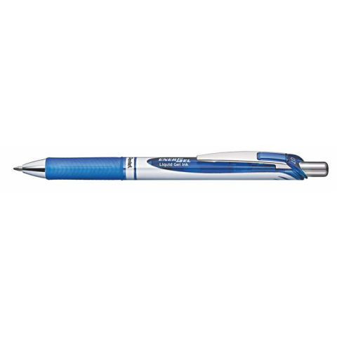 Zseléstoll, 0,35 mm, nyomógombos, PENTEL EnerGel BL77, kék Nyomógombos zseléstoll -exkluzív, fém hatású tolltest -fém klip -rovátkolt fogózóna a kényelmes, csúszásmentes használatért -golyóátmérő: 0,7 mm -írásvastagság: 0,35 mm -kémlelőnyílás -ultrag