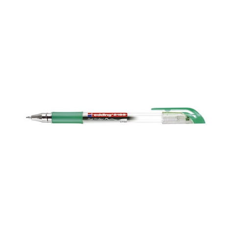 Zseléstoll EDDING 2185 zöld Átlátszó tolltestű, kényelmes gumírozott fogórésszel ellátott zselés toll. A kiegészítők (gumis fogórész, záródugó) színével megegyező írásszínek. Írásvastagság: 0,7 mm.