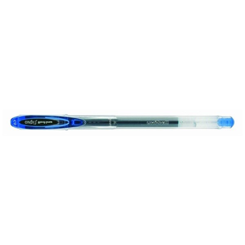 Zseléstoll UNI UM-120 0.7 mm kék Zseléstoll tintája víz alapú, kocsonyás állagú, kevésbé folyékony, ezért nagyobb mennyiségű és többféle típusú színezőanyagot tartalmazhat (pigmenteket - pl. csillogó arany és ezüst). A zselé tinta élénkebb színű és szé