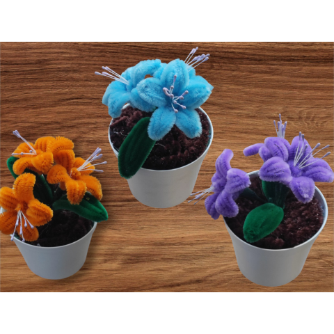 A zseníliaszálból készült liliom virágok kézzel alkotott, egyedi dísztárgyak, amelyek különleges, vidám és mégis elegáns hangulatot visznek bármely térbe.A puha, színes zseníliaszálakból formált liliomok aprólékos kidolgozással készülnek, mindegyik szeret