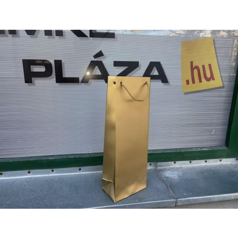 2 kép Zsinórfüles italtasak, italtartó papírtáska 13x8x37 cm arany színű