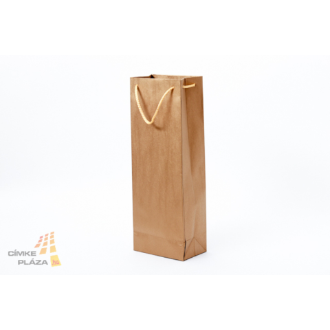 2 kép Zsinórfüles italtasak, italtartó papírtáska 13x8x37 cm natúr barna