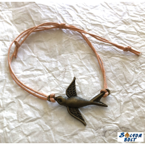 1 kép Zsinóros karkötő barack színben, madár medállal