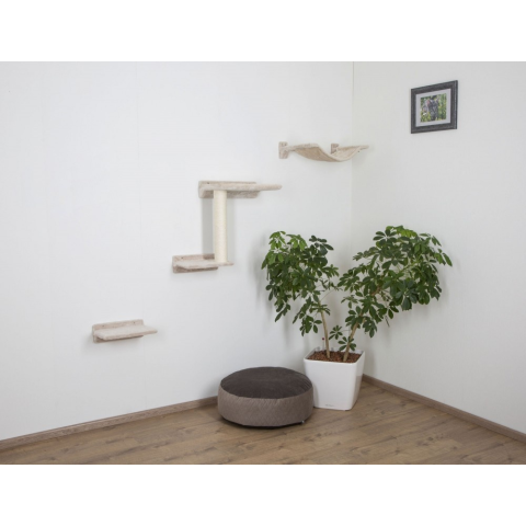 Zugspitze mászófal macskáknak – aktív szórakozás kedvencének! Falra szerelhető, több részből álló mászóka szizál borítással és puha fekvőfelülettel. Ideális a macskák természetes ösztöneinek kielégítésére. Zugspitze mászófal – mozgásra ösztönző játékté
