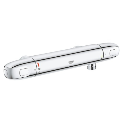 Termosztatikus fali zuhanykeverő zuhanykészlet nélkül, krómozott kivitelben. A keverő átfolyási sebessége 21,5 liter/perc. A keverő távolsága 150 mm. Fényes színben.