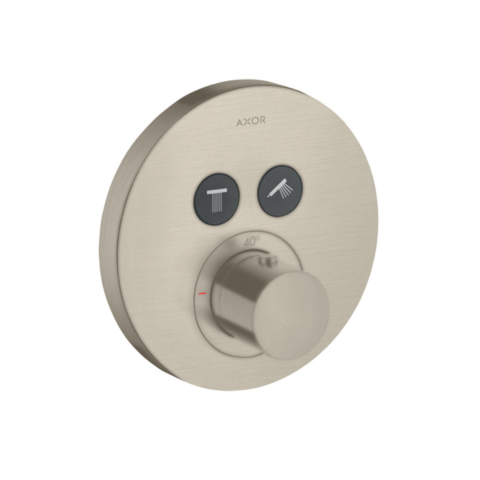 A ShowerSelect technológiás Hansgrohe csaptelepekkel NEM lehetséges az egyes funkciók vízhozamának szabályozása. A gombok az egyes funkciók be- és kikapcsolására szolgálnak. Termosztatikus vakolat alatti zuhany csaptelep vakolat alatti rész nélkül. Csiszolt nikkel színkivitelben. Matt felülettel.