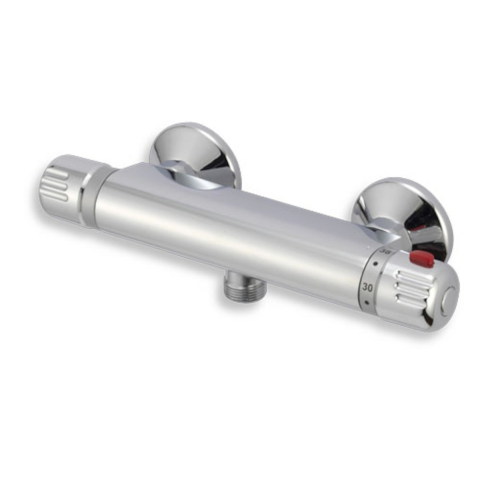 Termosztatikus fali zuhany csaptelep zuhanyszett nélkül. Króm kivitelben. A csaptelepek távolsága 150 mm.