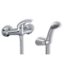 Karral fali zuhany csaptelep zuhanyszettel együtt. Kerekített kivitelben. Króm kivitelben. A csaptelepek távolsága 150 mm.
