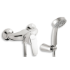 Karral fali zuhany csaptelep zuhanyszettel együtt. Króm kivitelben. A csaptelepek távolsága 150 mm.
