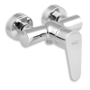 Karral fali zuhany csaptelep zuhanyszett nélkül. Króm kivitelben. A csaptelepek távolsága 100 mm.