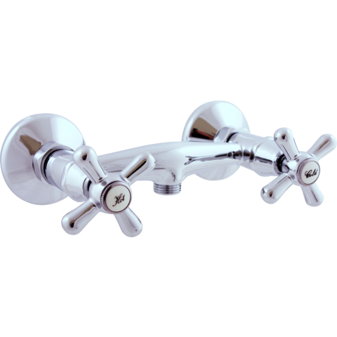Csappal fali zuhany csaptelep Króm kivitelben. A csaptelepek távolsága 100 mm.