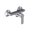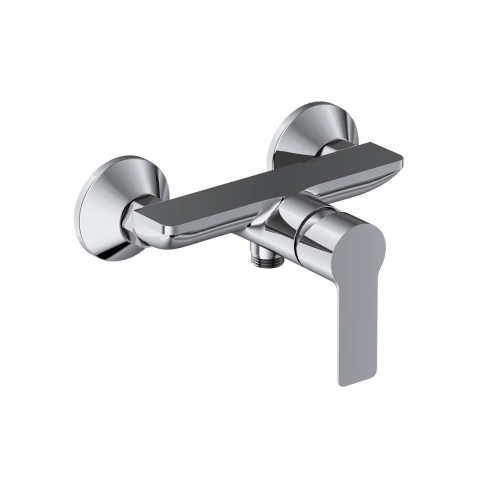 Falra szerelhető karos zuhanykeverő zuhany nélkül, krómozott kivitelben. A keverő átfolyási sebessége 23 liter/perc. Csaptelep távolság 150 mm. Fényes kivitelben.