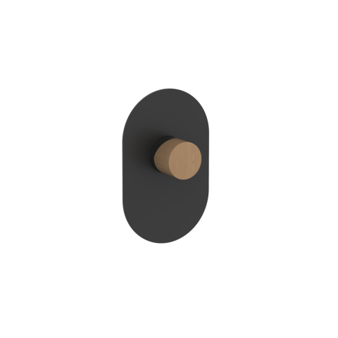 Karos, rejtett zuhanycsaptelep rejtett testtel. Világos fa kar. Matt felülettel.