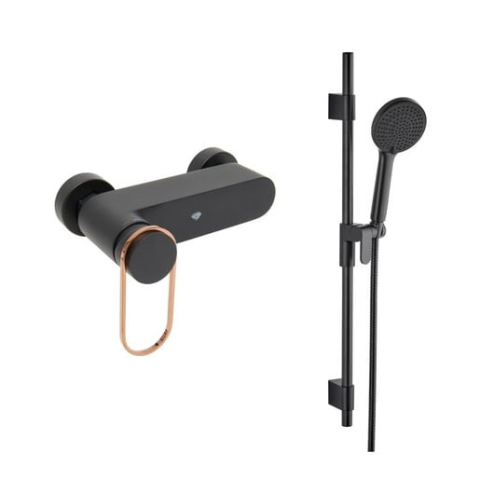 Karos fali zuhanykeverő zuhanykészlettel matt fekete színben. Csaptelep fesztávolsága 150 mm. Matt kivitelben.